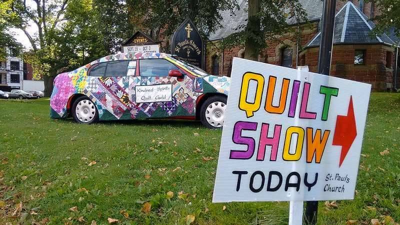 The show is open daily from 10 am–5 pm (closing at 7 pm on Friday and at 4 pm on Saturday). The venue, located at Grafton at Church Streets in downtown Charlottetown, is fully accessible and easy to find—just look for the car wrapped in a tailor-made quilt parked on the lawn.