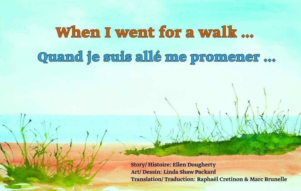 Available in English/French or in an English-only version, When I went for a walk … on the beach / Quand je suis allé me promener … à la plage, can be purchased at The Dunes in Brackley, various gift shops, and at Bookmark in Charlottetownt. Translations are available in Arabic, Spanish, Italian, Chinese and other languages, by contacting the author at ellen.dougherty.books@gmail.com.